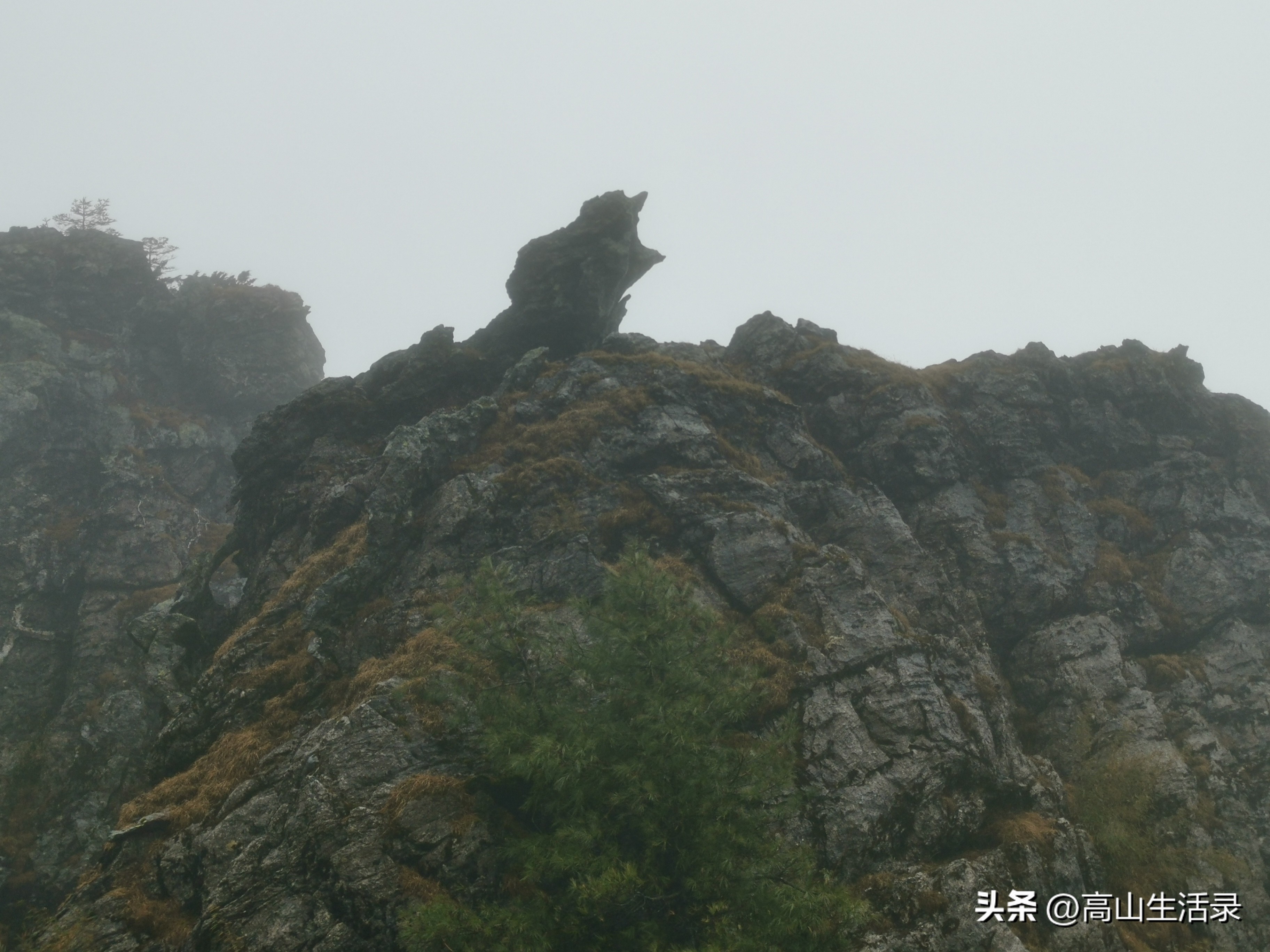 而右侧山体上好似一只巨大的鸟,张着大嘴,既像向天倾诉着什么,又像着急吃东西,给人以无限的遐想。